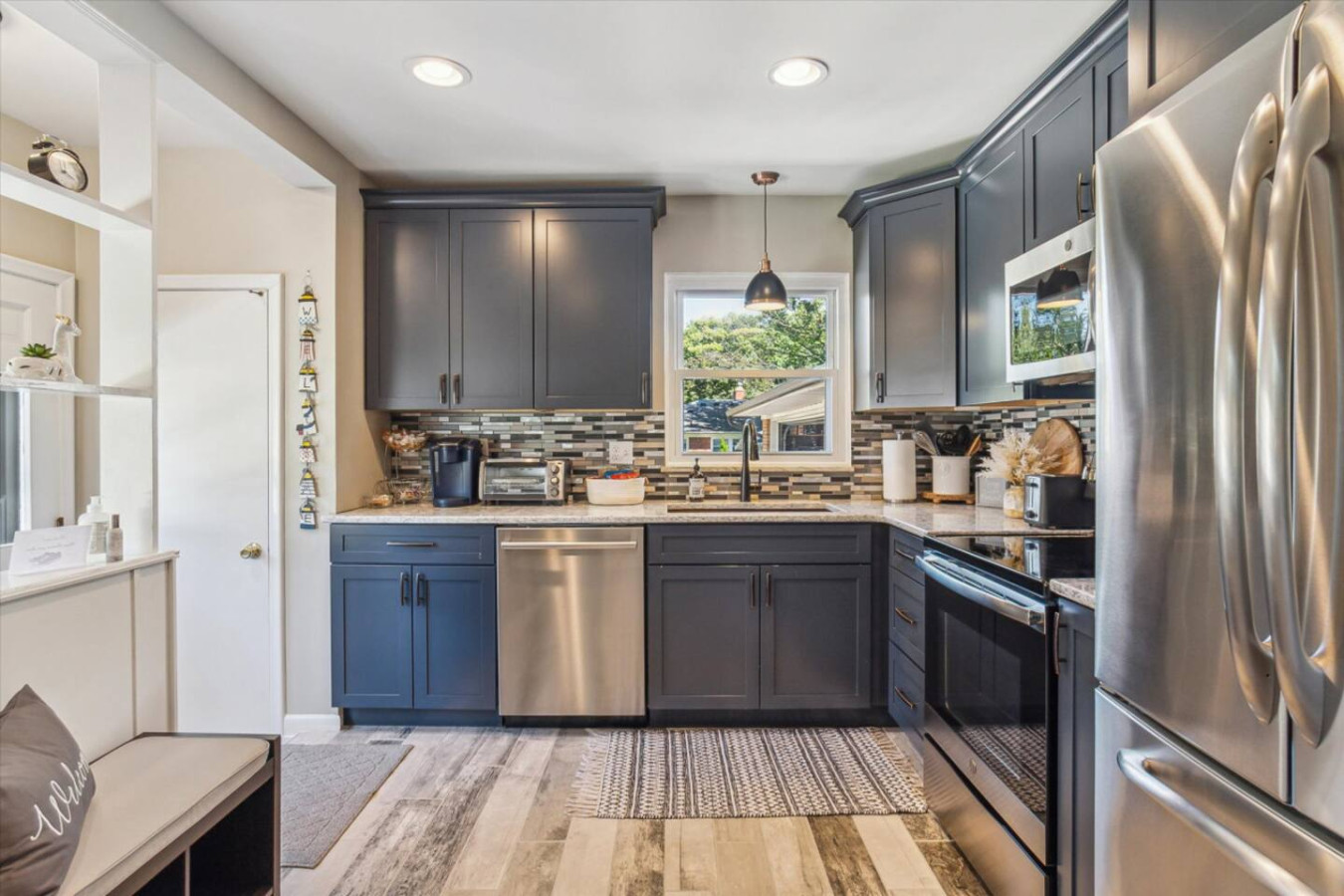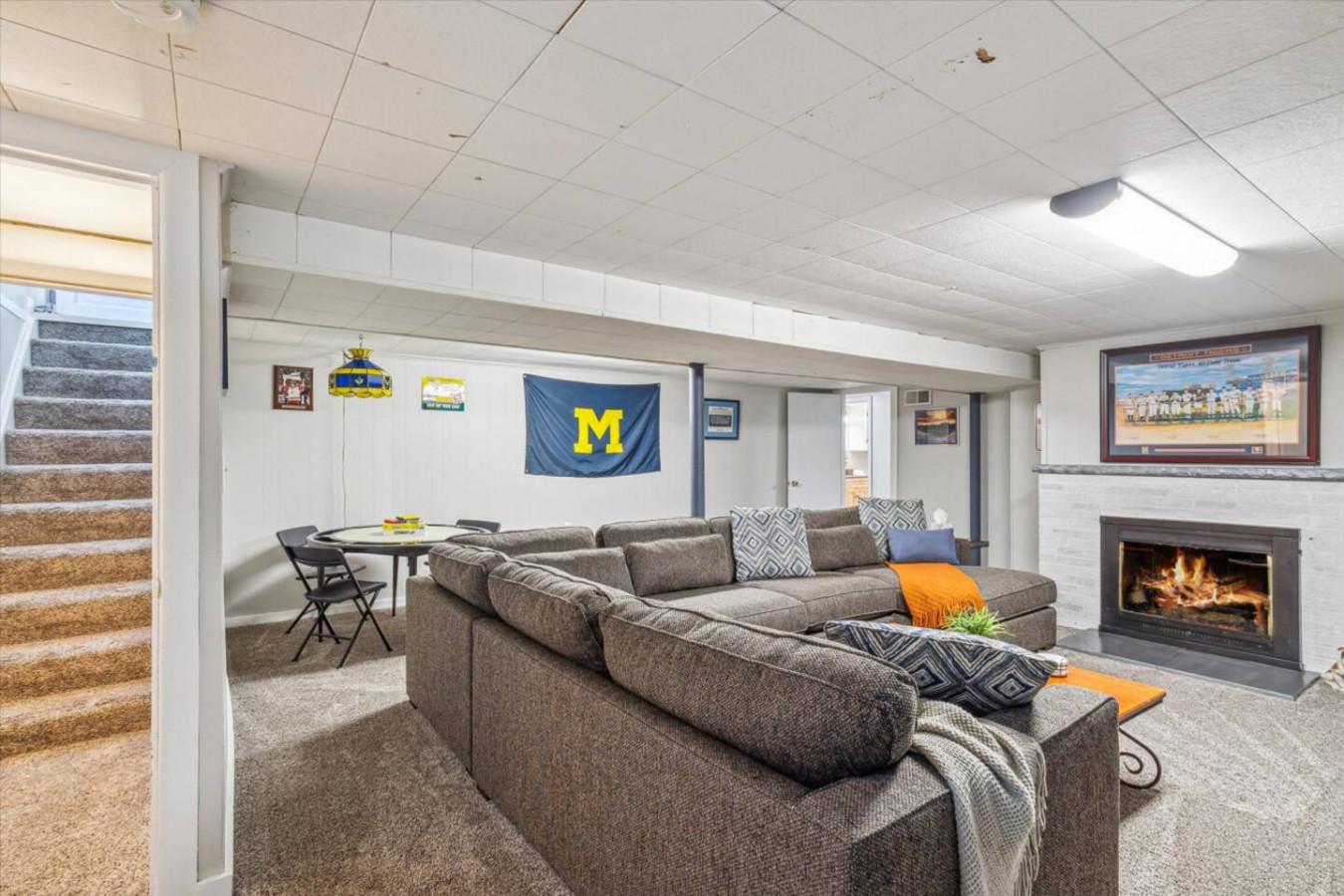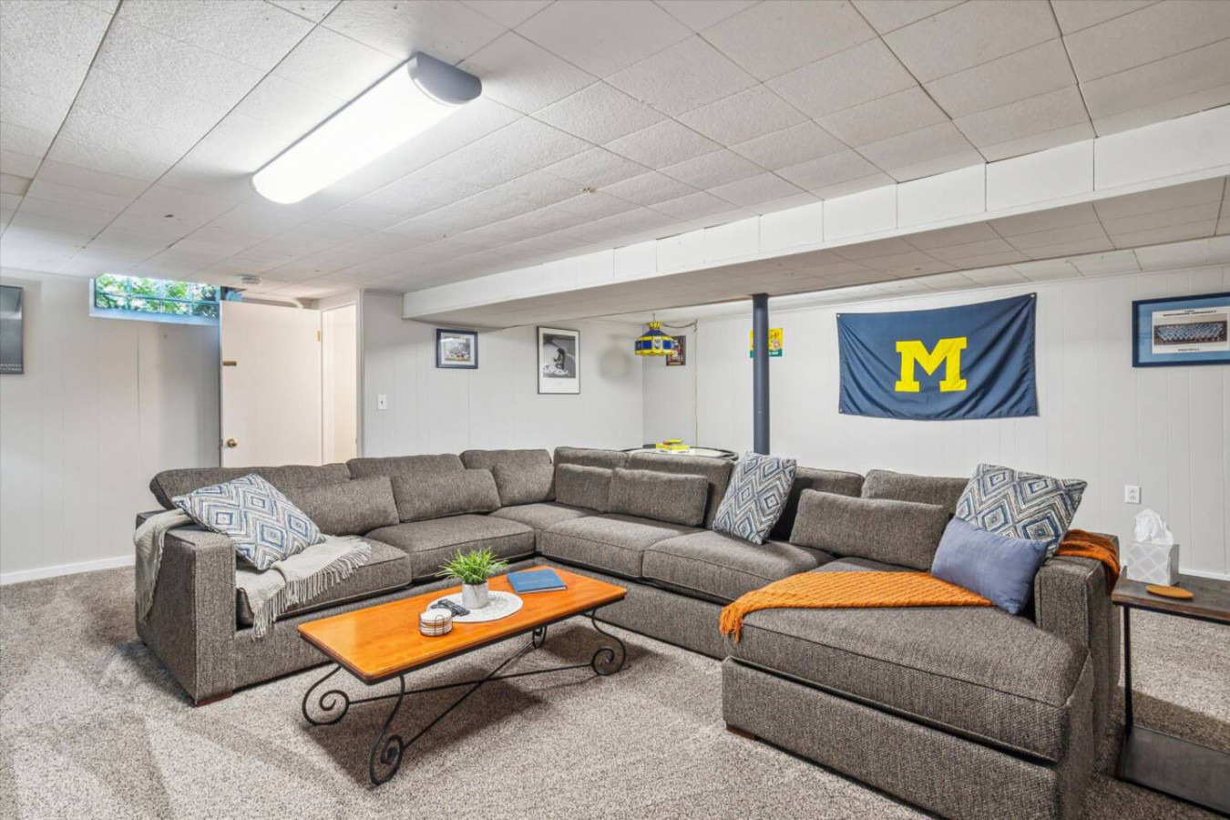 Charming 3 bed/2 bath, walking distance to Michigan Stadium. Peaceful, away from hustle & bustle of campus with serene walking trails close by. Recently remodeled, gourmet kitchen with stainless steel appliances. Enjoy super cozy living room & dining area, large sectional & 50' flat screen. Cable & wifi, washer & dryer + supplies including complimentary coffee & bottled water. Huge 2nd living area in fully finished basement with massive sectional, flat screen, 2 car garage & plenty of parking.