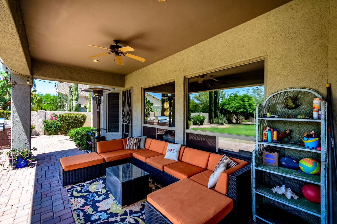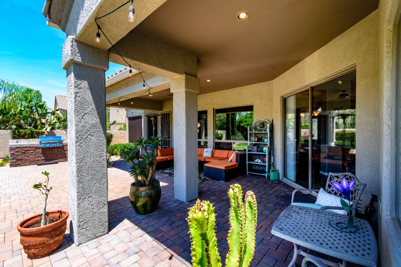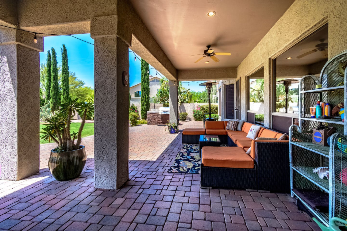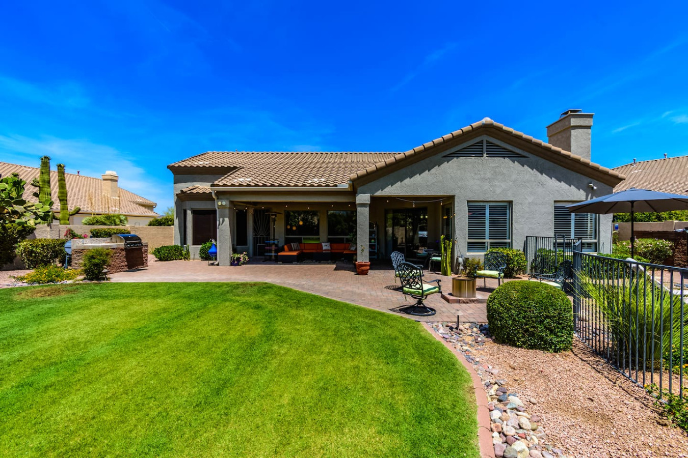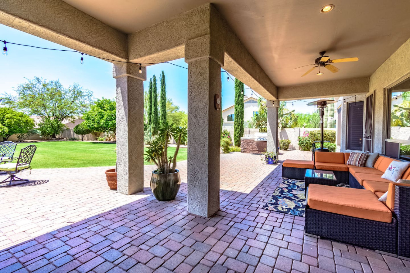 May 2023 5.00This home is a great find. The neighborhood was peaceful and quiet with a playground just minutes away. The kitchen was well equipped and the bedrooms were quite comfortable. As an added bonus to the lush pool and spa in the massive backyard we sampled some fruit from the wonderful citrus trees with our breakfasts. Thank you for creating a wonderful stay.
