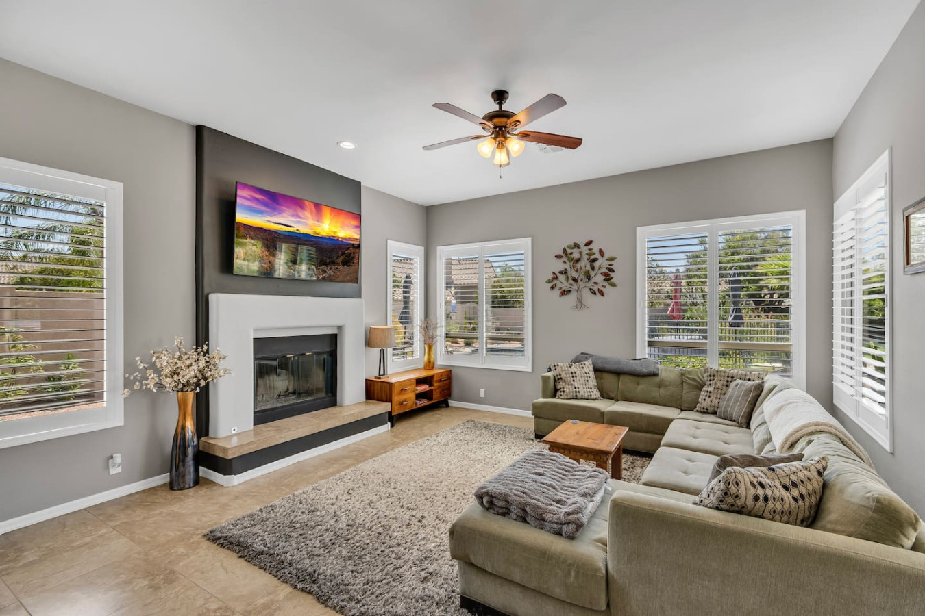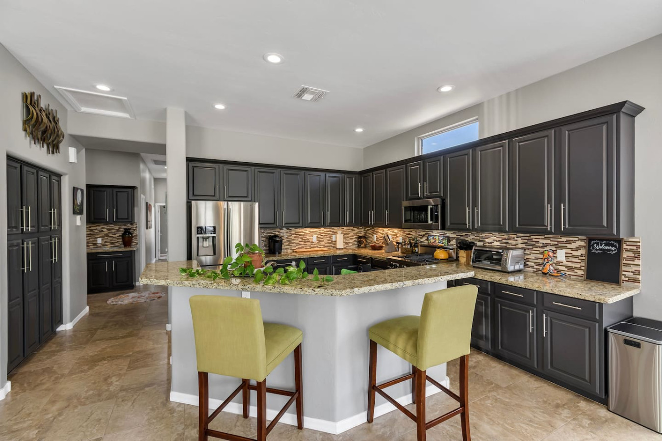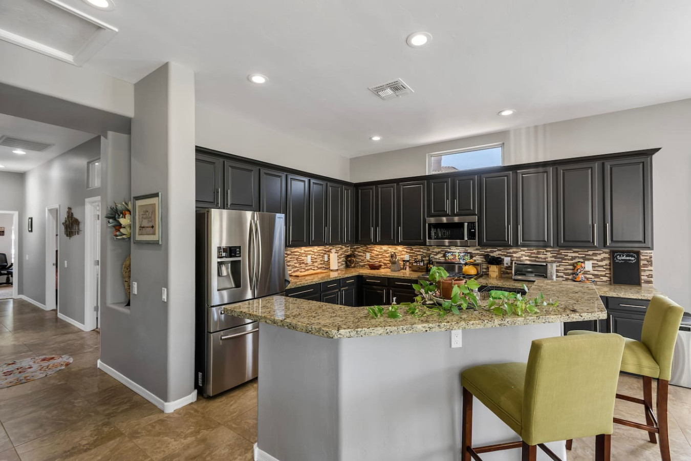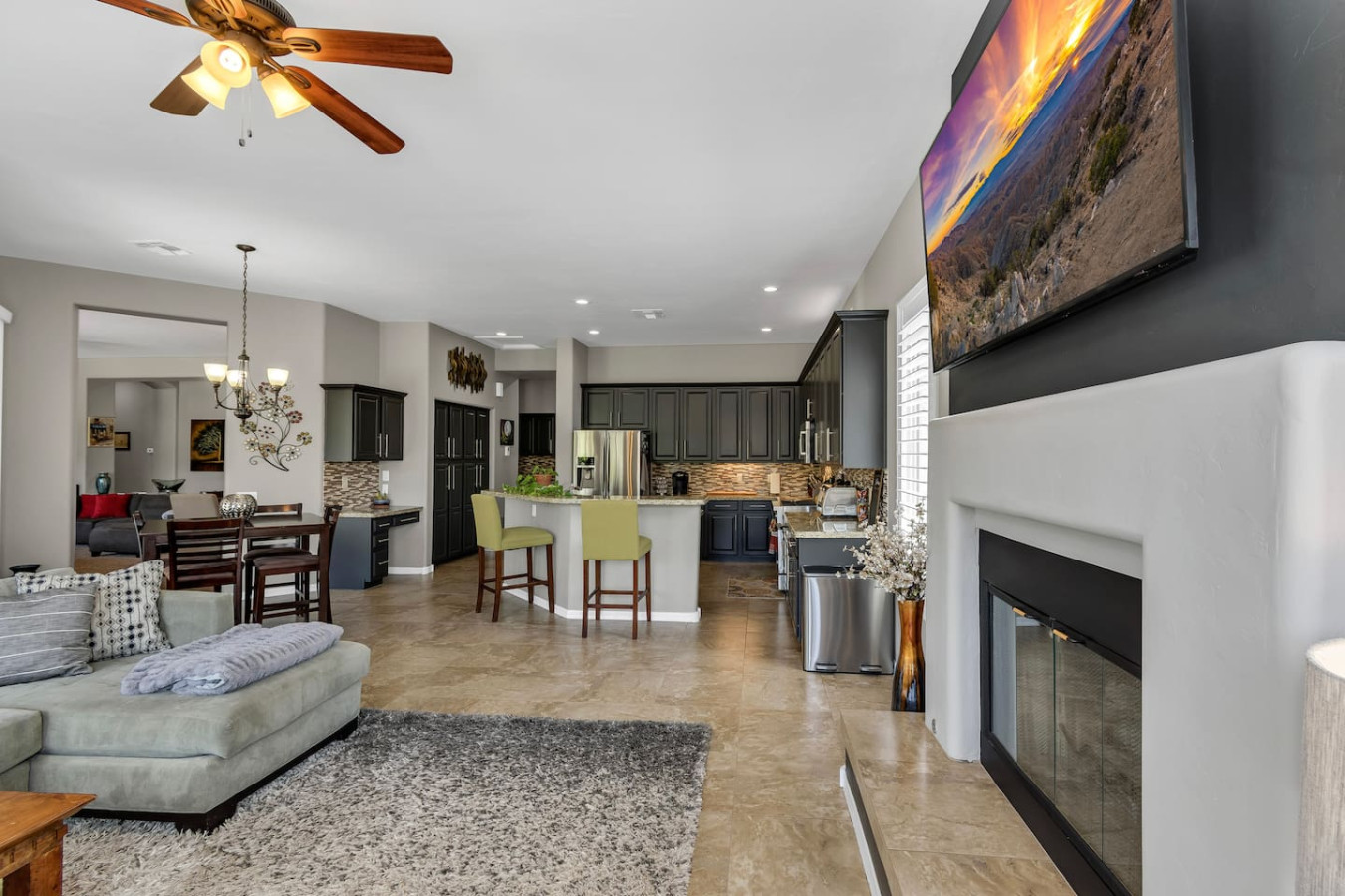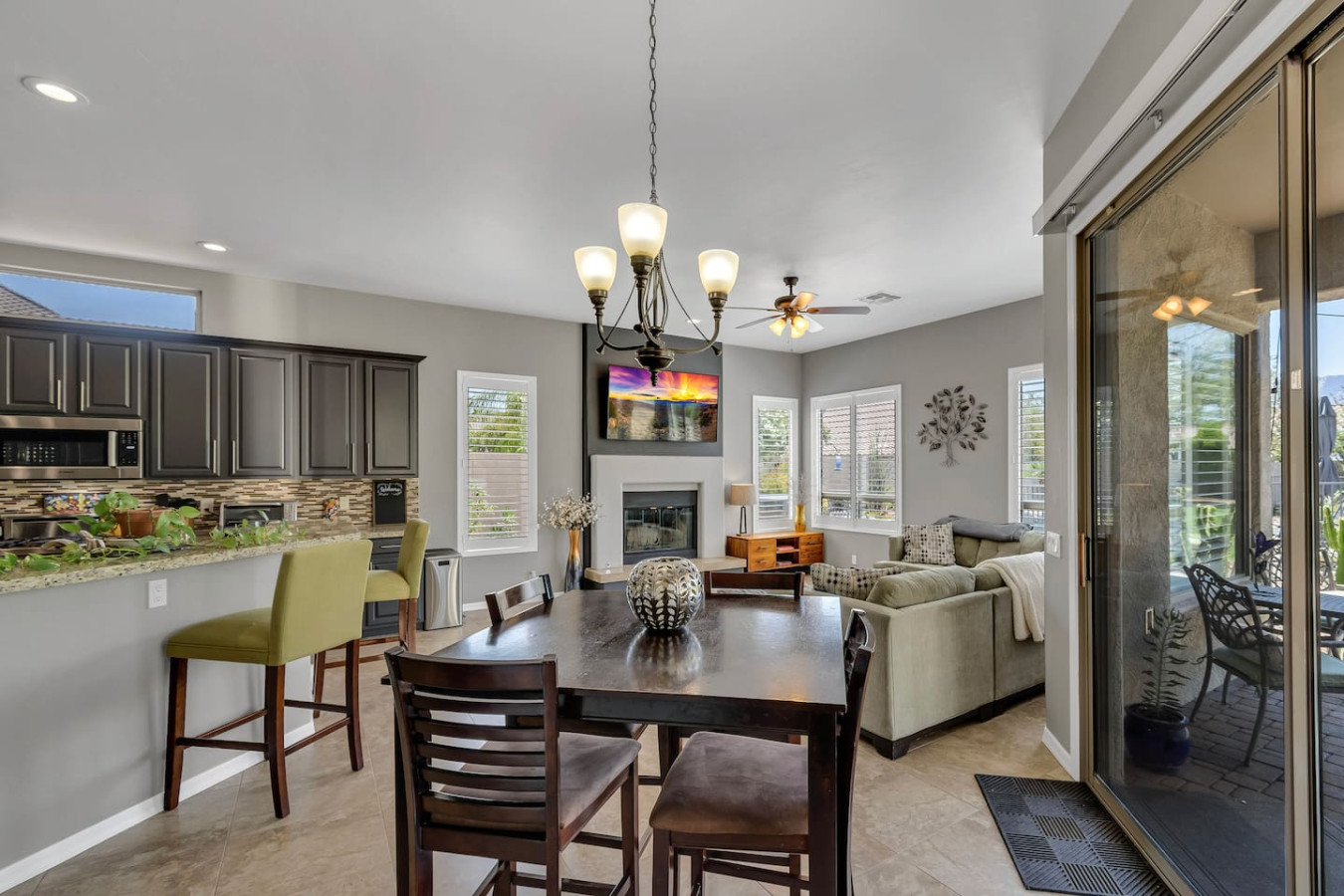 May 2023 5.00This home is a great find. The neighborhood was peaceful and quiet with a playground just minutes away. The kitchen was well equipped and the bedrooms were quite comfortable. As an added bonus to the lush pool and spa in the massive backyard we sampled some fruit from the wonderful citrus trees with our breakfasts. Thank you for creating a wonderful stay.