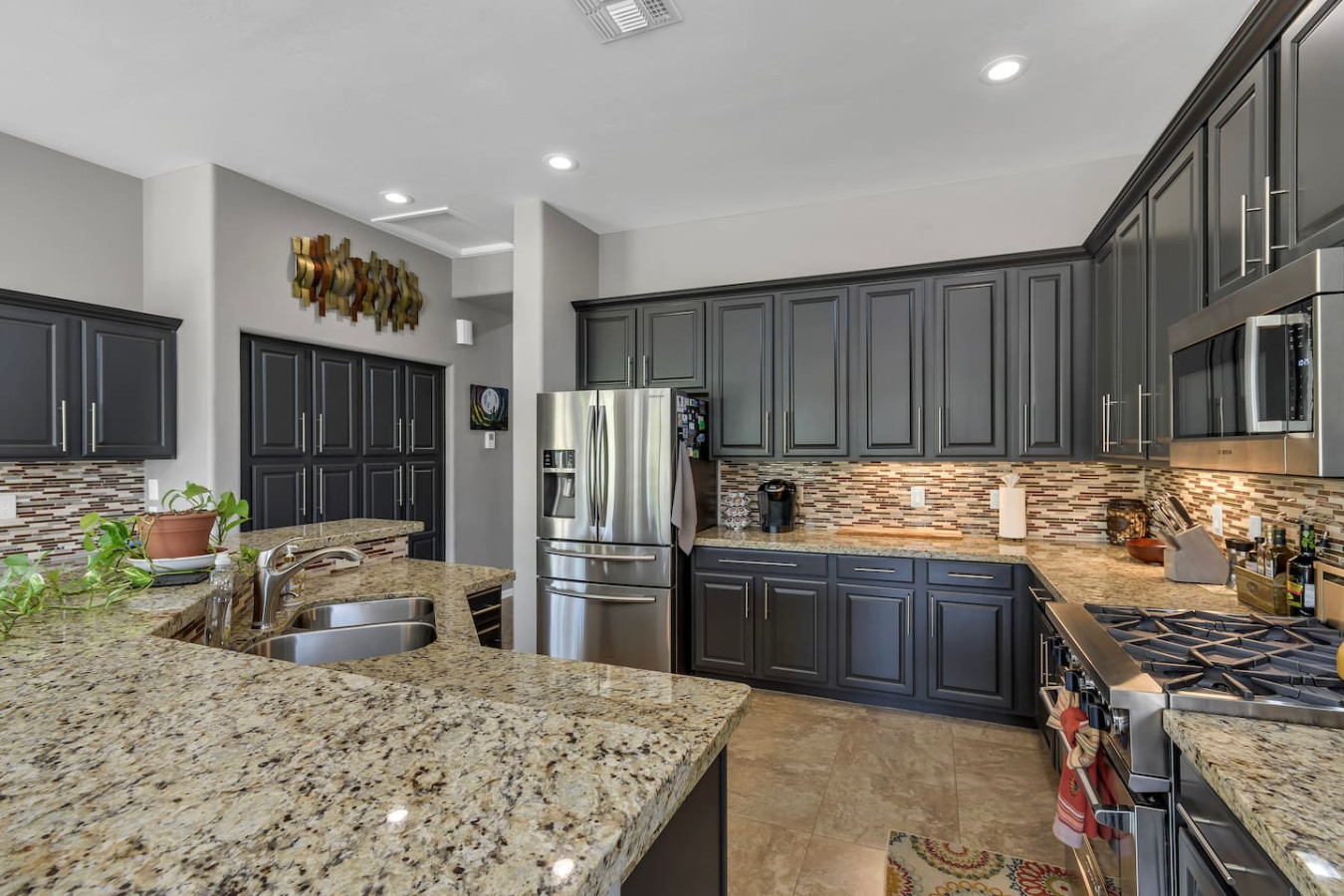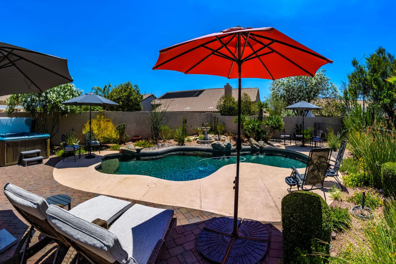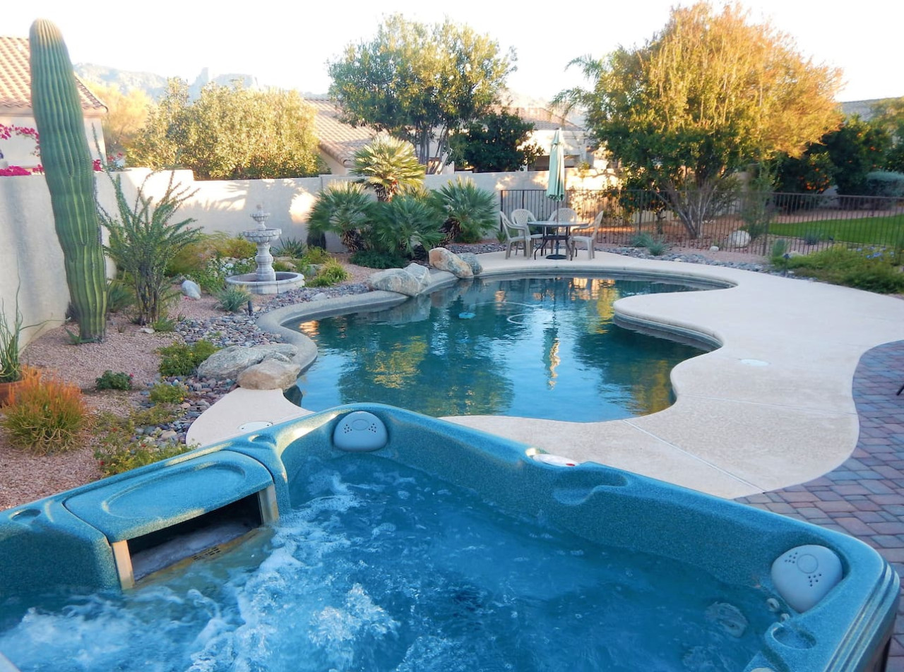 Welcome to ZEN PARADISE! This house is ready for your next trip. Great for Families, Business Travel, Golf Vacations or a Romantic Getaway. Ask about extended stay discounts. Zen Paradise is just north of nearby Tucson, Arizona. You have world class hiking and golf just minutes away. Enjoy awesome VIEWS from the Back Patio, an incredible Poolside experience or relax in the Hot Tub! Cozy up inside in front of a 60 inch TV or make a gourmet dinner in a beautiful kitchen. Zen Paradise is waiting:) Beautiful Single Story, with POOL & Huge Yard 3 beds 2 baths 2,399 sqft. - Single Story, Attached 3 Car Garage, Pool, Hot Tub. Inquire now about this Beautiful home in Oro Valley, AZ! Single story with desirable split floor plan! Fully Renovated, ENORMOUS LOT! *Model Sharp!!* *VERY RARE COMBO: 1 STORY, 4 BEDS, POOL* HOT TUB*EXCELLENT MT.VIEWS* *New Upgraded Tile* *New Rich GRANITE counters throughout* *Custom Travertine/Glass Backsplashes Throughout* *Upgraded Lighting/Mirrors* *Upgraded Cabinets w/Hardware and Crown Molding* *Stainless Appliances* *Band New Carpet/Pad* *4'' Baseboards* *Grass* *New 2'' Blinds Throughout* *Interior & Exterior Paint* *HUGE YARD* great for entertaining, High ceilings, covered patio, 2 duel sink vanity's in both bathrooms. Large shower, 3 CAR GARAGE & Walking distance to Painted Sky elementary school. You will have the run of the entire home. The home sits on a quiet cul-de-sac. You just north of the City of Tucson, AZ